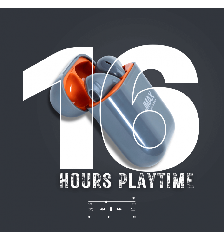 Jmax Run Series Grey Ture Bass Wireless Bluetooth Earbuds with16 Hour Long Playtime